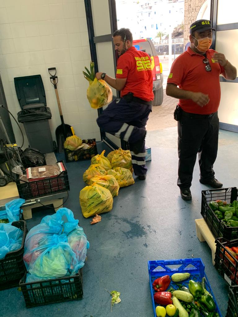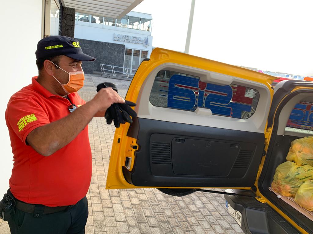 Varios voluntarios y personal del departamento de Servicios Sociales, entre los que se encuentra el concejal del área, Nicolás Saavedra, colaboraron en la selección y colocación de alimentos, que están siendo distribuidos por voluntarios de Bomberos Lanzarote Boluntis y ambulancias SIA a las familias que más lo necesitan según el criterio de los técnicos de la Concejalía.