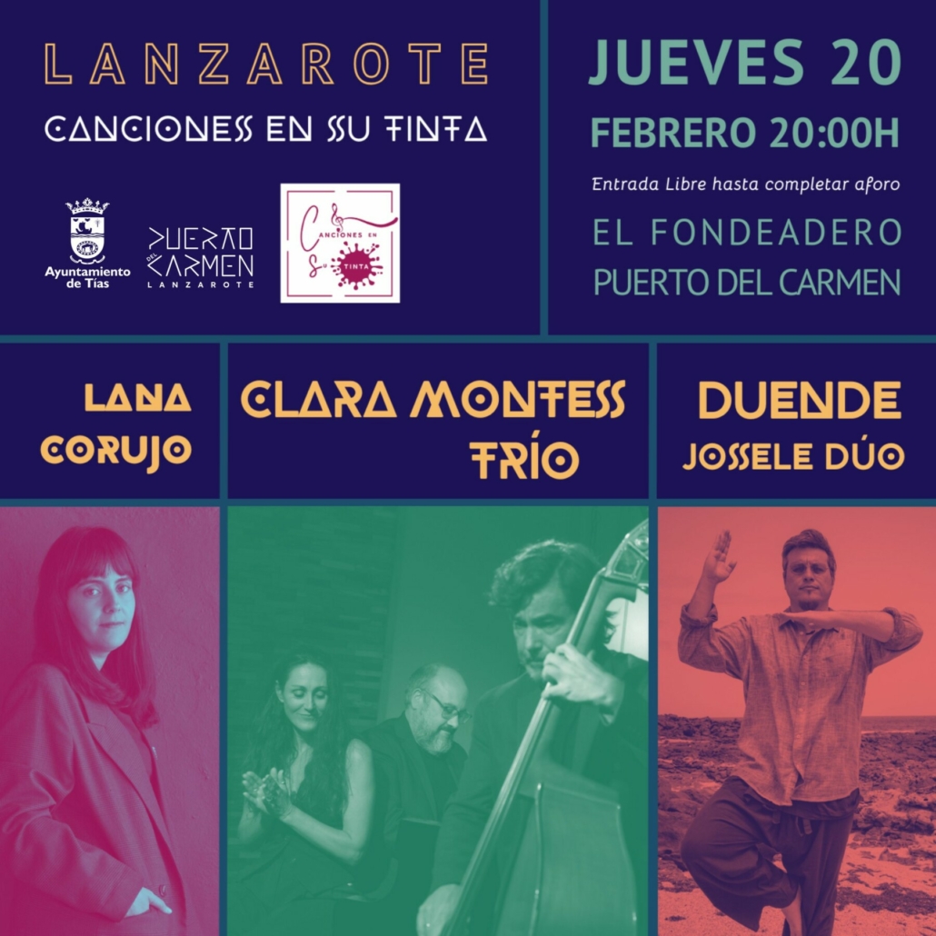 Participan la cantautora gaditana Clara Montes y su trío de piano y contrabajo, la poeta lanzaroteña Lana Corujo, el músico lanzaroteño Israel Curbelo y el poeta y músico extremeño Duende Josele, que hará las funciones de maestro de ceremonias.