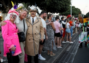 La explosión de color e imaginación, de diversión y buen ambiente, se vivió también el sábado con el gran coso carnavalero, que transcurrió a lo largo de la Avenida de las Playas hasta la Plaza del Varadero, donde actuaron Malibú Band, el grupo Bomba y su orquesta y el dj Ángel Pérez. Miles de personas acudieron a esta cita como público y participantes luciendo sus mejores creaciones.