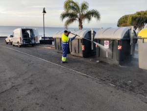Un servicio de limpieza con hidrolavador utiliza agua a alta presión para eliminar suciedad incrustada, moho, grasa y residuos de superficies como contenedores, sus alrededores, bancos o aceras, ofreciendo una intervención potente y eficiente que alarga la duración de la limpieza.
