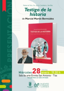 Tías, 22 de enero de 2026.- La sala de arte de la Ermita de San Antonio, en Tías, acogerá el próximo 28 de enero a las 19:30 horas la presentación del libro Testigo de la historia, crónicas y vivencias de la creación de los Centros de Arte, Cultura y Turismo del Cabildo de Lanzarote y La Graciosa, escrito por Marcial Martín Bermúdez, antiguo director de los CACT.