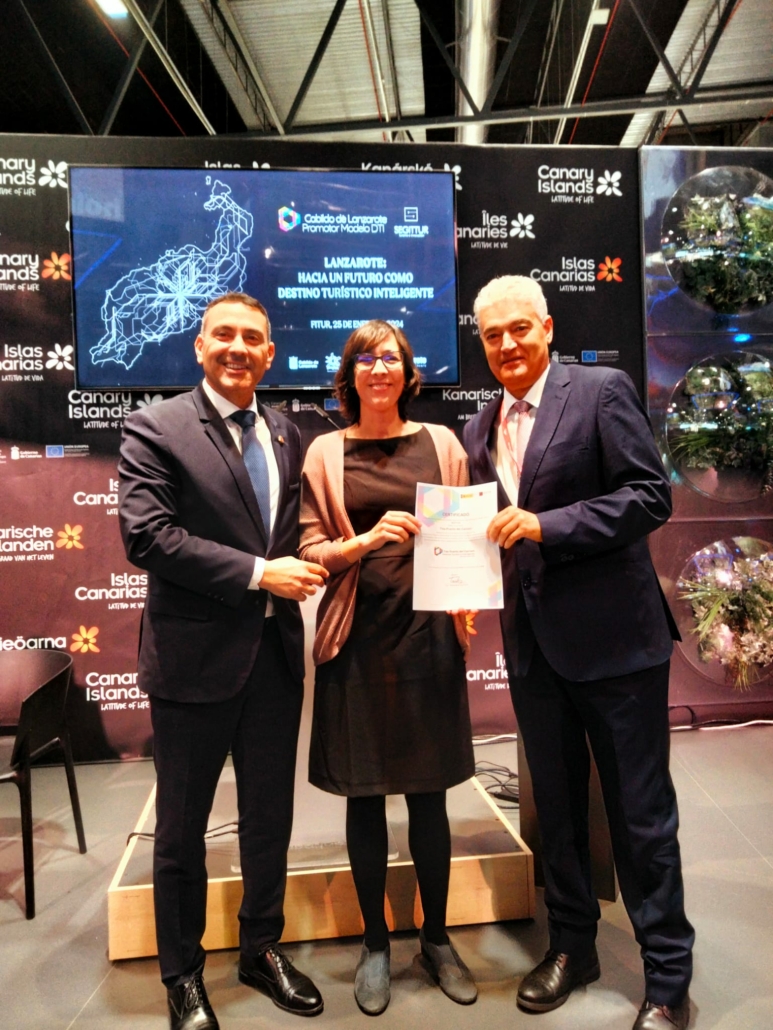 - El Ayuntamiento de Tías recibió hoy en Fitur el reconocimiento al trabajo realizado desde 2022, cuando se suscribió un acuerdo con Segittur para su conversión en DTI