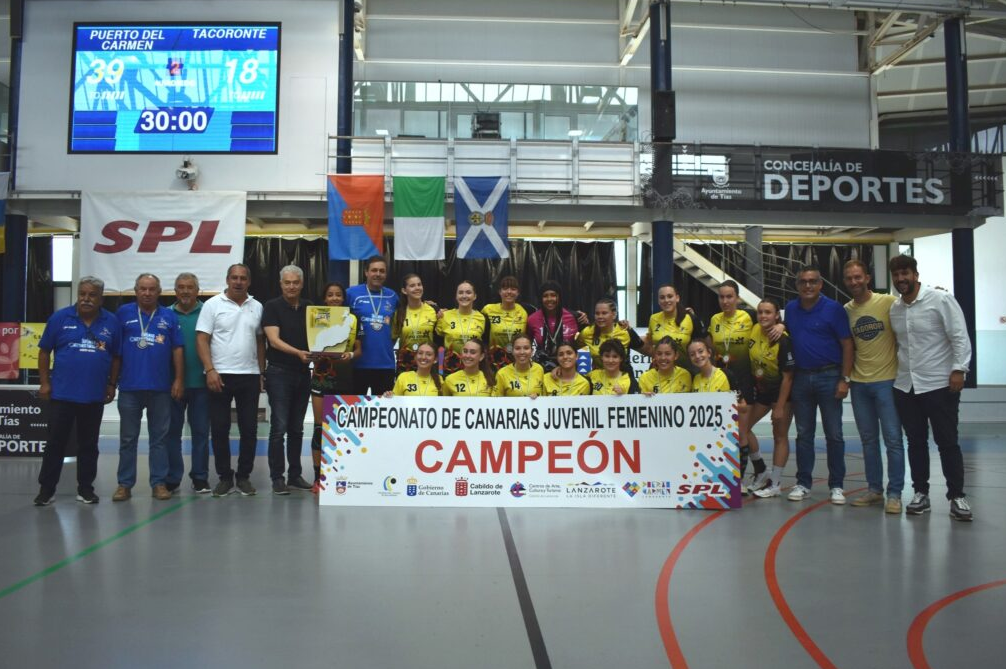 Tías, 14 de abril 2025.- El grupo de gobierno del Ayuntamiento de Tías, encabezado por el alcalde, José Juan Cruz Saavedra, felicita al equipo de balonmano femenino juvenil SPL Lanzarote Puerto del Carmen tras proclamarse ayer campeonas de Canarias y acceder al Campeonato de España junto al subcampeón canario, 3com Squad Valsequillo.