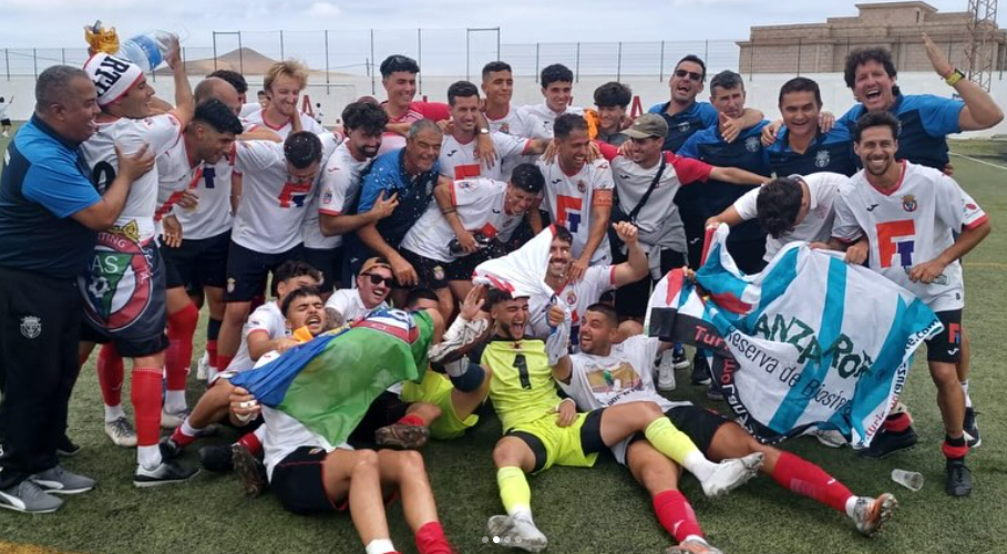 Tías, 16 de junio de 2025.- El Ayuntamiento de Tías felicita al club de fútbol Sporting Tías por su merecido ascenso a la categoría Regional Preferente logrado este fin de semana. Tras empatar 0‑0 en La Oliva y aprovechar el 2‑0 de la ida, los blanquinegros certifican su regreso a una categoría que habían perdido al final de la pasada campaña