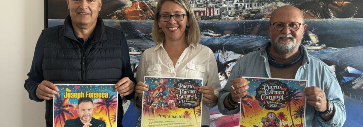 El alcalde de Tías, José Juan Cruz, el primer teniente de alcalde, Nicolás Saavedra, y la concejala de Fiestas, Miriam Hernández, presentaron hoy el programa de las fiestas del Carnaval, que incluye para el viernes a las 17:30 h un pasacalle tradicional con Los Buches desde Playa chica hasta la Plaza del Varadero, donde posteriormente se amenizará un baile para mayores y familias.