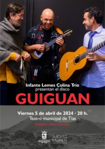 Alexis Lemes, Javier Infante y Javier Colina suben al escenario del Teatro Municipal de Tías para presentar Guiguan, su primer trabajo discográfico.
