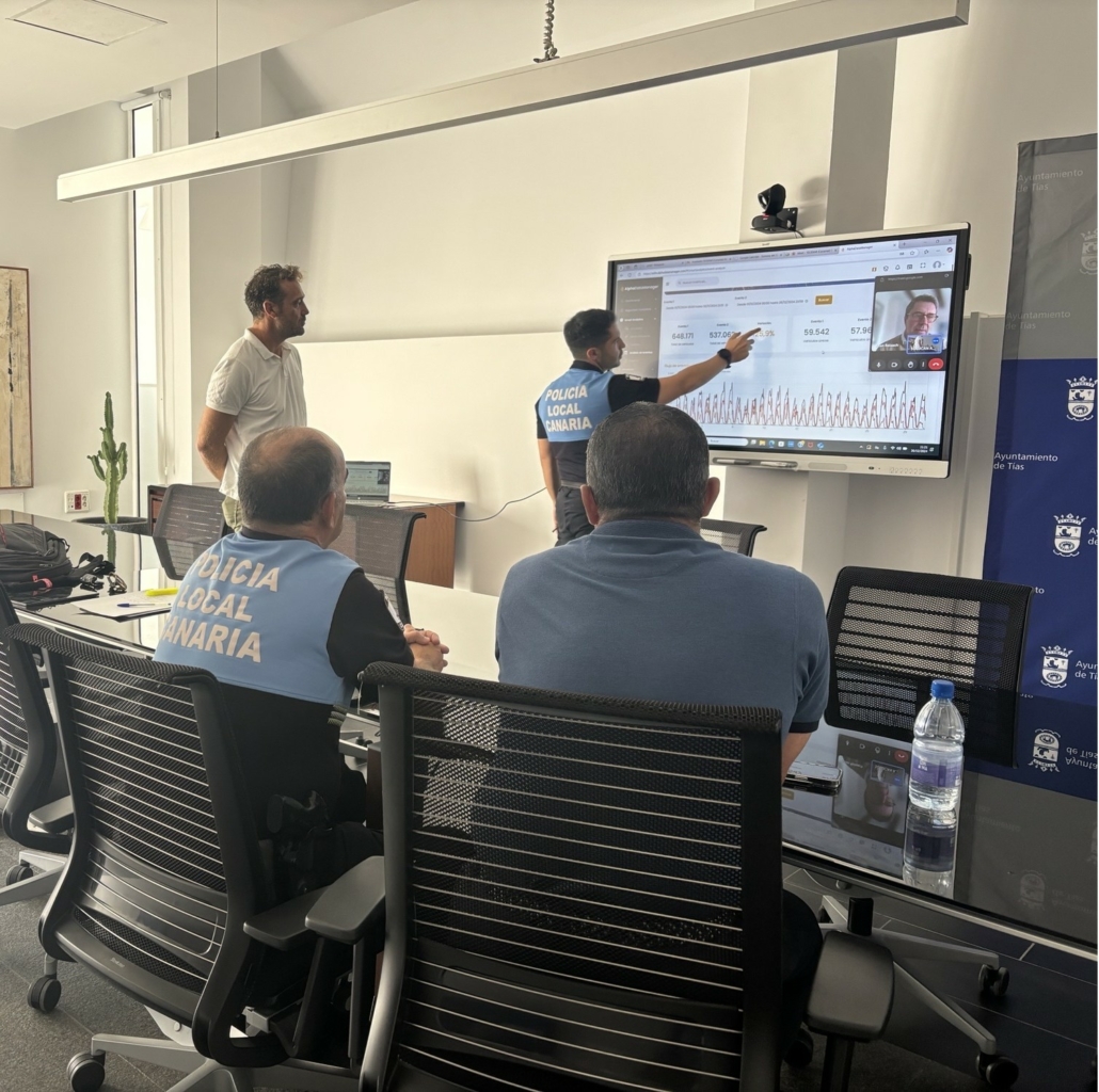 La Policía Local de Tías, junto al concejal de Movilidad, Sergio García, mantuvieron una reunión telemática con el director comercial de Alphanet, la compañía proveedora de estos servicios tecnológicos, y sus instaladores en Canarias, quienes explicaron que su plataforma estadística se puede adaptar a las necesidades del municipio de Tías.