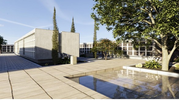 Según la propuesta, se contemplan dos plazas centrales de mayor dimensión, siendo espacios de encuentro y distribución donde aparecerán zonas de sombra y láminas de agua. “Estas zonas pretenden a su vez tener una pequeña desvinculación con las zonas de enterramiento, teniendo espacios ajardinados en su perímetro, con árboles de gran porte, que puedan ofrecer mayor tranquilidad”.