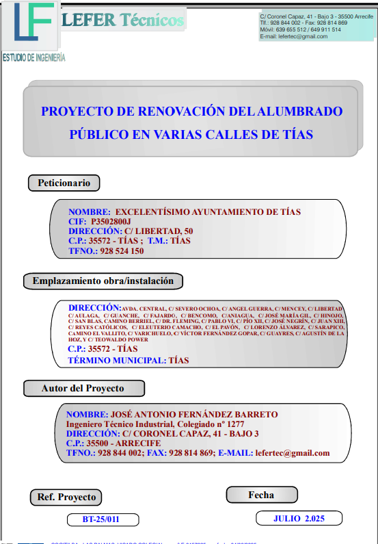 Separata del Proyecto de Ampliación del Cementerio Municipal de Tías con Decreto número : ALC/2023/ 2066 de fecha 28/09/2023 retención de crédito de 114.800,34 €