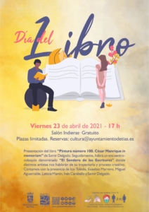 El Día del Libro se celebra en el municipio de Tías con la presentación de una obra muy especial, el poemario de Samir Delgado titulado Pintura número 100. César Manrique in memorian. El libro recoge 60 poemas en los que el autor dialoga con el arte de César Manrique con motivo del centenario del nacimiento del artista lanzaroteño (1919-1992).