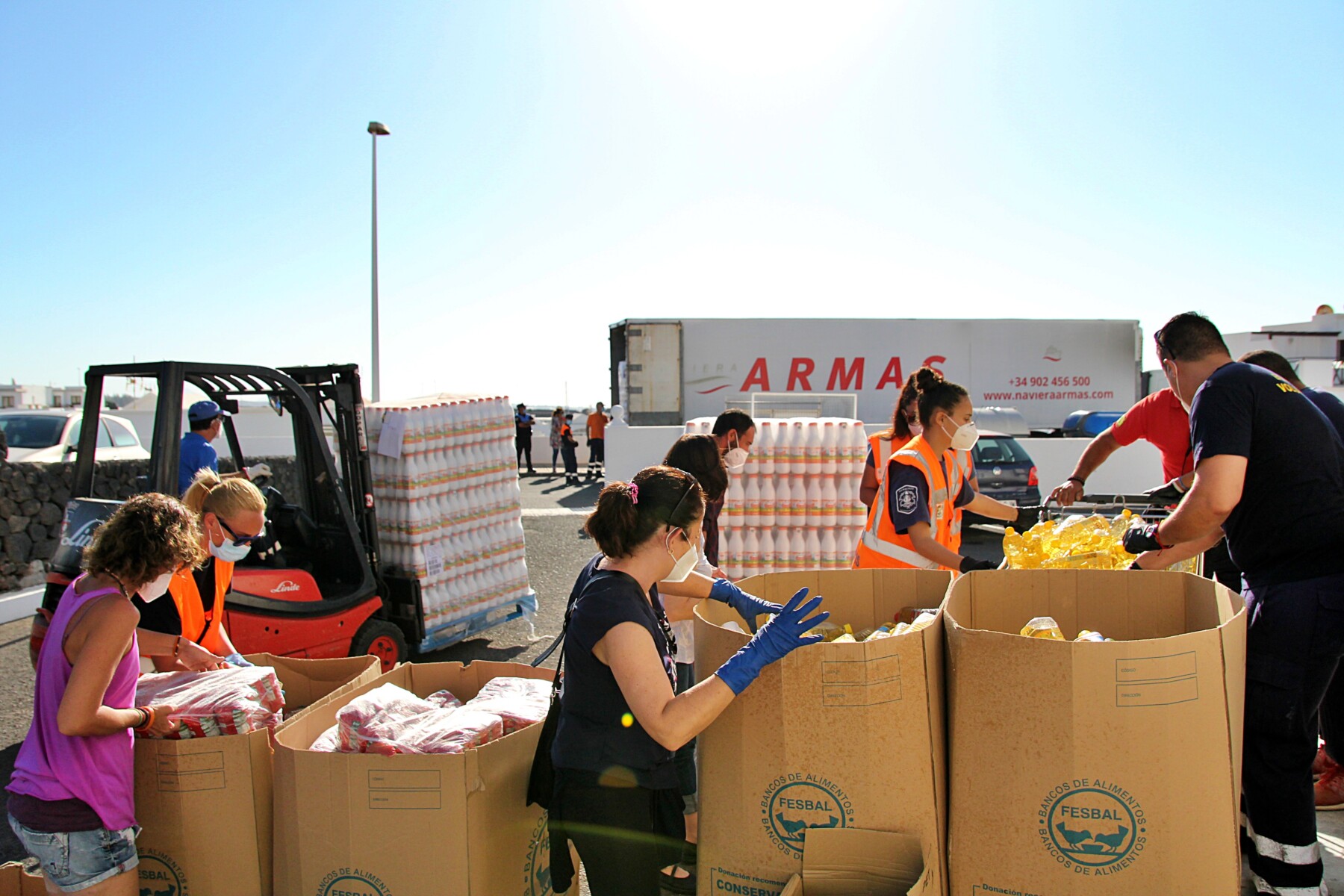 El Ayuntamiento de Tías agradece al Banco de Alimentos de Las Palmas y a las empresas Naviera Armas y Transportes Intercanarios por su colaboración desinteresada en el transporte de la mercancía. A su vez, hace extensivo el reconocimiento a las trabajadoras y trabajadores de la concejalía, así como a los voluntarios de Protección Civil Tías, Bomberos Voluntarios Lanzarote Boluntis y Ambulancias SIA Lanzarote.