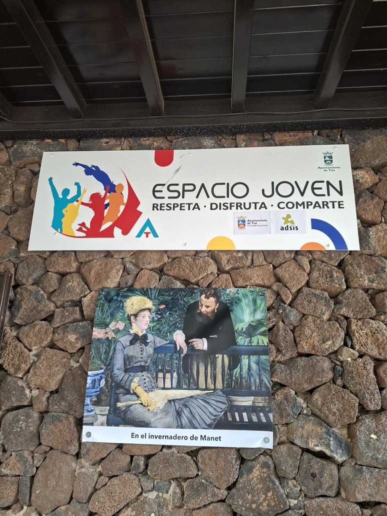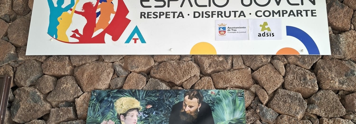 Tías, 05 de febrero de 2026.- El Ayuntamiento de Tías inauguró hoy una iniciativa cultural y juvenil para acercar la pintura a los más jóvenes. Una reproducción de La gallinita ciega, de Goya, de la obra En el invernadero, de Manet y de Mimosas e Iris, de Chagall, cuelgan en el exterior del Espacio Joven de Tías, en la plaza El Pavón, como elementos claves para acercar el arte pictórico universal a la población.