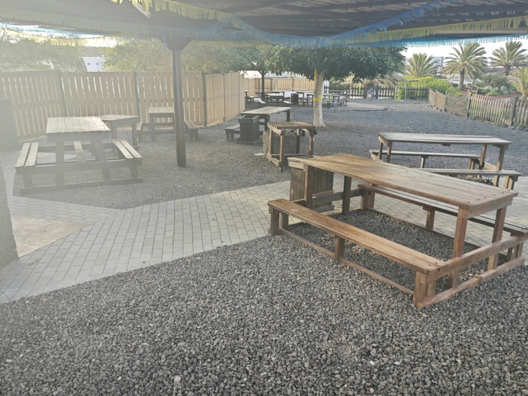Este espacio consta en su área interior de dos socos cubiertos con barbacoas, además de las correspondientes zonas de mesas, de paseo, cancha de bolas, parque infantil, aseos y agua corriente. También dispone de fregaderos y amplias zonas para que los más pequeños jueguen y se diviertan.