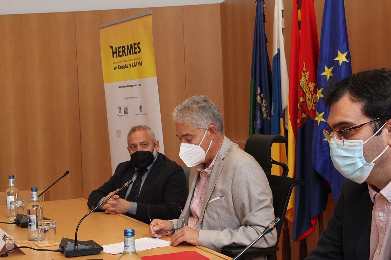 El Ayuntamiento de Tías acogió el viernes la presentación oficial del congreso internacional Hermes “Comunicación y medios audiovisuales en España y Latinoamérica”. Este congreso se celebrará los días 22 y 23 de marzo de forma telemática y 24, 25 y 26 de marzo de forma presencial desde el municipio de Tías con la colaboración del Ayuntamiento, Cabildo Insular de Lanzarote y la Muestra de Cine de Lanzarote.