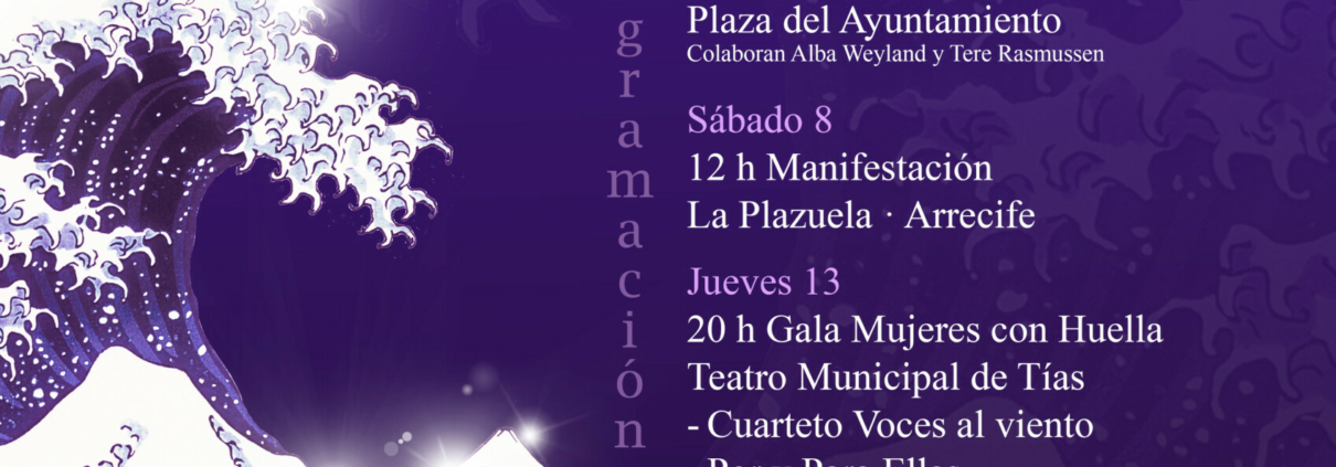 El 13 de marzo, el Teatro Municipal de Tías acogerá la gala Mujeres con Huella a las 20:00 horas, que también contará con la interpretación de Signalanz. El evento, en el que se hará un reconocimiento a varias mujeres del municipio, contará con la participación del cuarteto Voces al Viento y el espectáculo Por y Para Ellas, protagonizado por Marey Martín y Adrián Sánchez. Asimismo, se llevará a cabo la entrega de placas de reconocimiento a mujeres que han dejado su huella en el municipio.