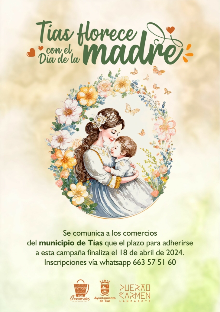Tías, 15 de abril de 2024.- El Ayuntamiento de Tías reactiva su zona comercial abierta con el lanzamiento de la Campaña Día de la Madre 2024, que se desarrollará en el municipio desde el 23 de abril hasta el 5 de mayo. Previamente, los establecimientos comerciales pueden adherirse enviando un mensaje telefónico al número 663575160.