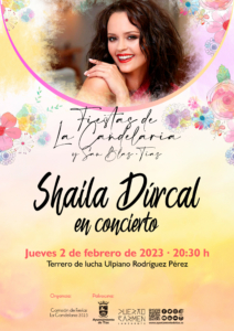 – 20,30 h.- Shaila Dúrcal en concierto, en el Terrero Municipal “Ulpiano Rodríguez Pérez”.