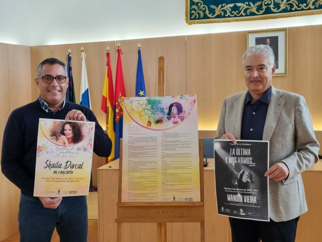 El Ayuntamiento de Tías presentó hoy el cartel de las fiestas en honor a la patrona del municipio, Nuestra Señora de La Candelaria, con una programación organizada por la Comisión de Fiestas y patrocinada por el consistorio. Desde el 26 de enero hasta el 5 de febrero se desarrollarán 48 actos, entre los que destacan las actuaciones de Shaila Durcal, Manolo Vieira y Pepe Benavente.
