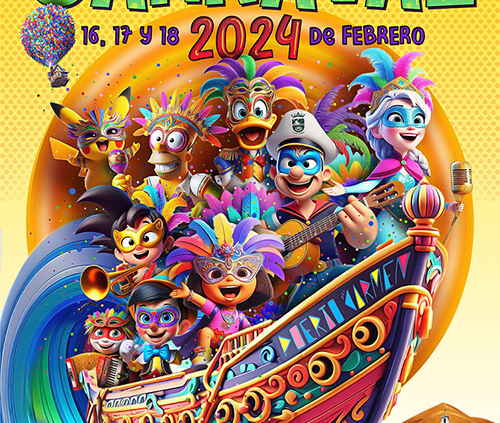 Juan Diego Ingelmo eligió un diseño colorista con personajes televisivos viviendo el Carnaval de la localidad turística desde un gran barco con los logotipos distintivos de Tías y Puerto del Carmen y con la imagen al fondo de la iglesia de La Candelaria.