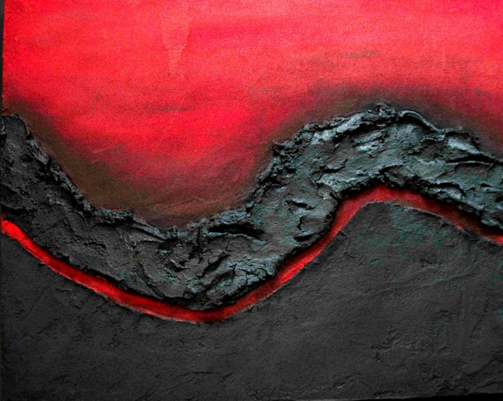 - El artista lanzaroteño Jaime Romero presenta una serie de pinturas de nueva producción donde retrata la fuerza y violencia del volcán