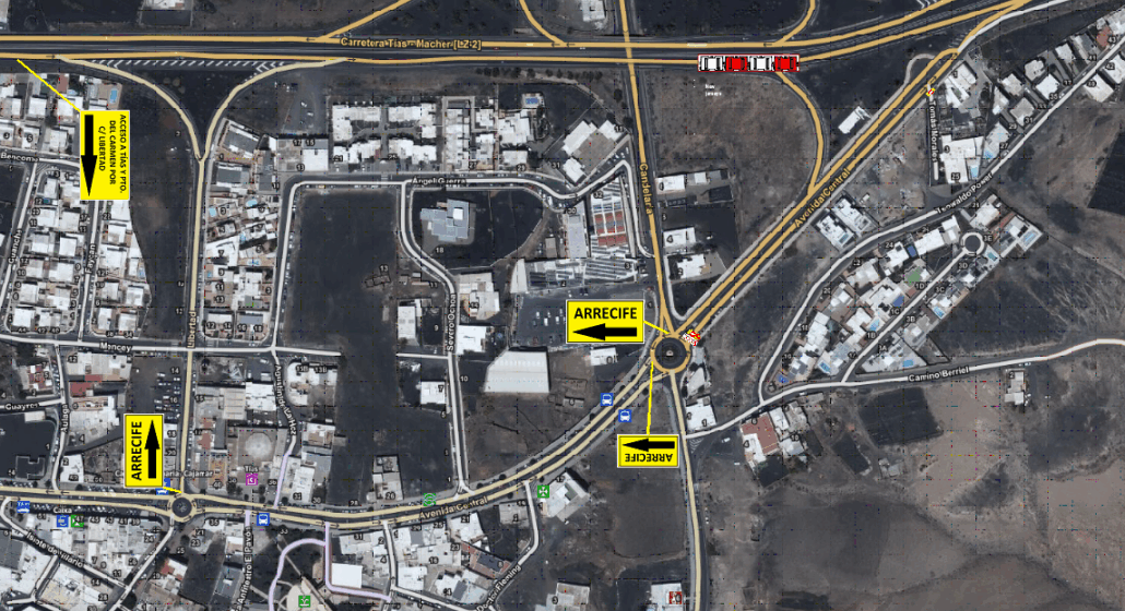 - El tramo afectado por las obras de rehabilitación de la vía es el que va desde la rotonda de Los Luchadores hacia Arrecife